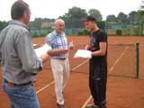 Ein Spiel der 40'er Herren zwischen Klaus Hundrieser und Uwe Köhnenkamp sei hier noch erwähnt: die Kontrahenten standen sich über vier Std. gegenüber!! Letztendlich gewann Klaus mit 6:4/5/7/6:7 (TB: 8:6)